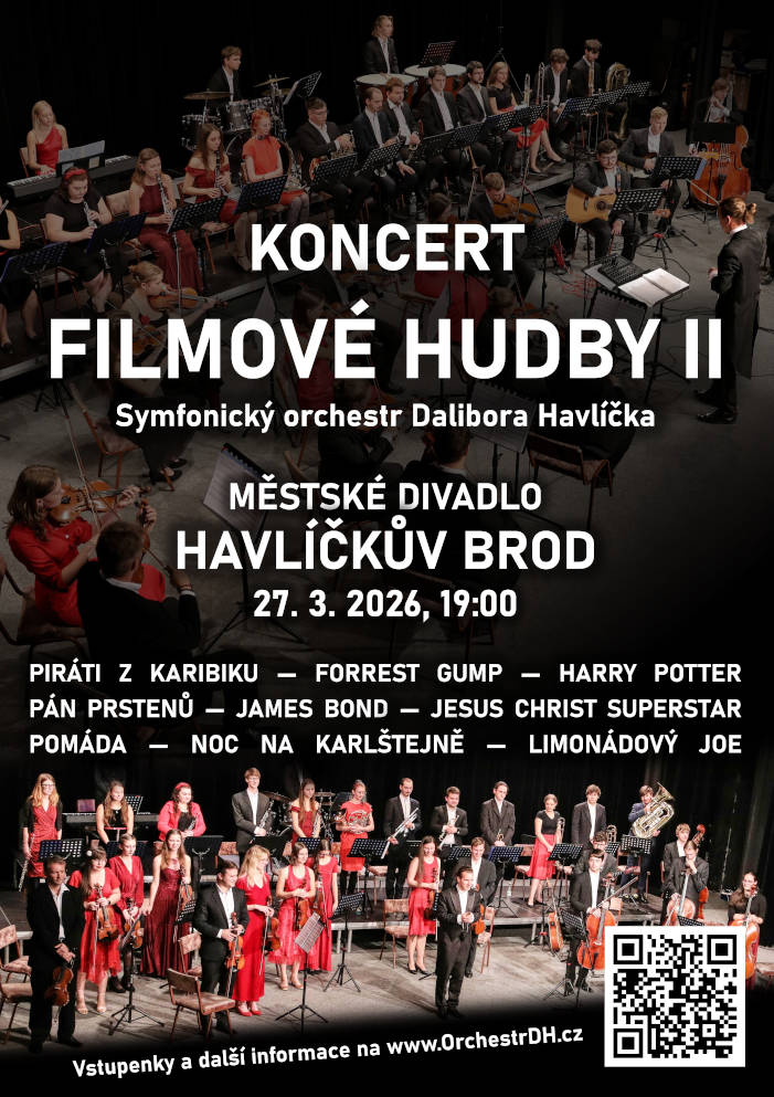 Na minulý Koncert filmové hudby orchestr naváže dalšími známými filmovými soundtracky. Uslyšíte melodie z filmů James Bond, Forrest Gump nebo Pán prstenů. Nebude chybět ani hudba jednoho z největších autorů filmové hudby Ennia Morriconeho, tentokrát z filmu Hodný, zlý a ošklivý. Malé posluchače zase jistě potěší melodie z Harryho Pottera, Pirátů z Karibiku nebo oblíbených českých pohádek.