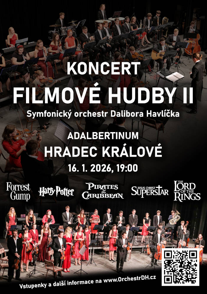 Na minulý Koncert filmové hudby orchestr naváže dalšími známými filmovými soundtracky. Uslyšíte melodie z filmů James Bond, Forrest Gump nebo Pán prstenů. Nebude chybět ani hudba jednoho z největších autorů filmové hudby Ennia Morriconeho, tentokrát z filmu Hodný, zlý a ošklivý. Malé posluchače zase jistě potěší melodie z Harryho Pottera, Pirátů z Karibiku nebo oblíbených českých pohádek.